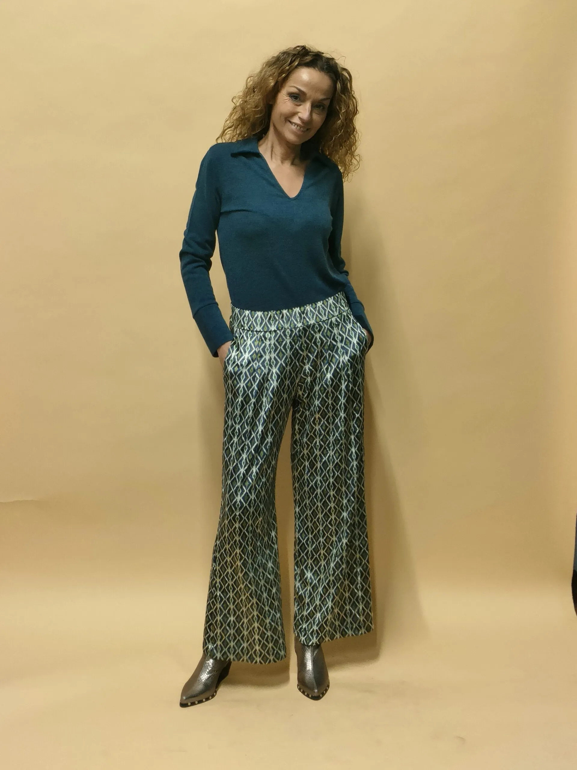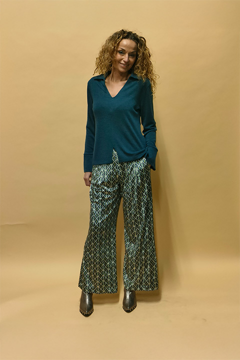 Jersei màniga llarga de coll camiser amb escot en pic, confeccionat en un suau punt vigoré, ofereix calidesa, elasticitat i un tacte ultra agradable sobre la pell. Peça versàtil, ideal tant per a looks casuals com per a estils més formals.