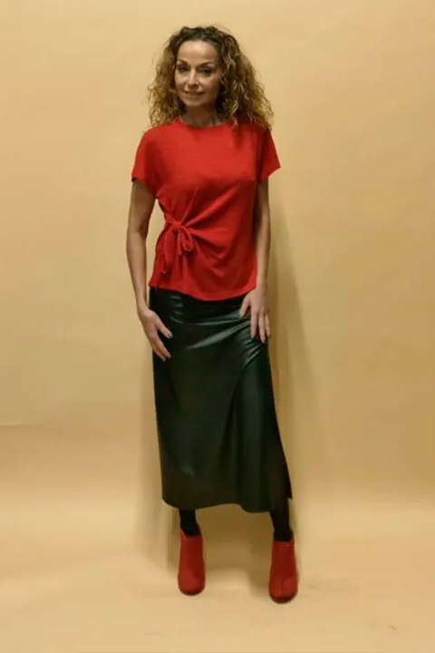 Jersei màniga curta coll rodó drapejat lateral, lleuger, calentet , suau i ple destil. Peça perfecta per a entretemps o per emportar sota les teves jaquetes favorites. Confeccionat amb teixit de punt vigoré, ofereix una textura sedosa i càlida que acarona la pell, amb una elasticitat que s’adapta al cos sense ajustar. Un bàsic renovat que combina funcionalitat i estil en una sola peça.