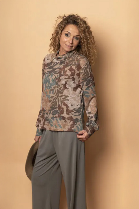 Col·lecció de jerseis dissenyats en un “Print” de taques en tons sorres i verds, sobre teixit de punt lurex super suau i elàstic. ” Toqueu audaç i contemporani per al vostre dia a dia.”