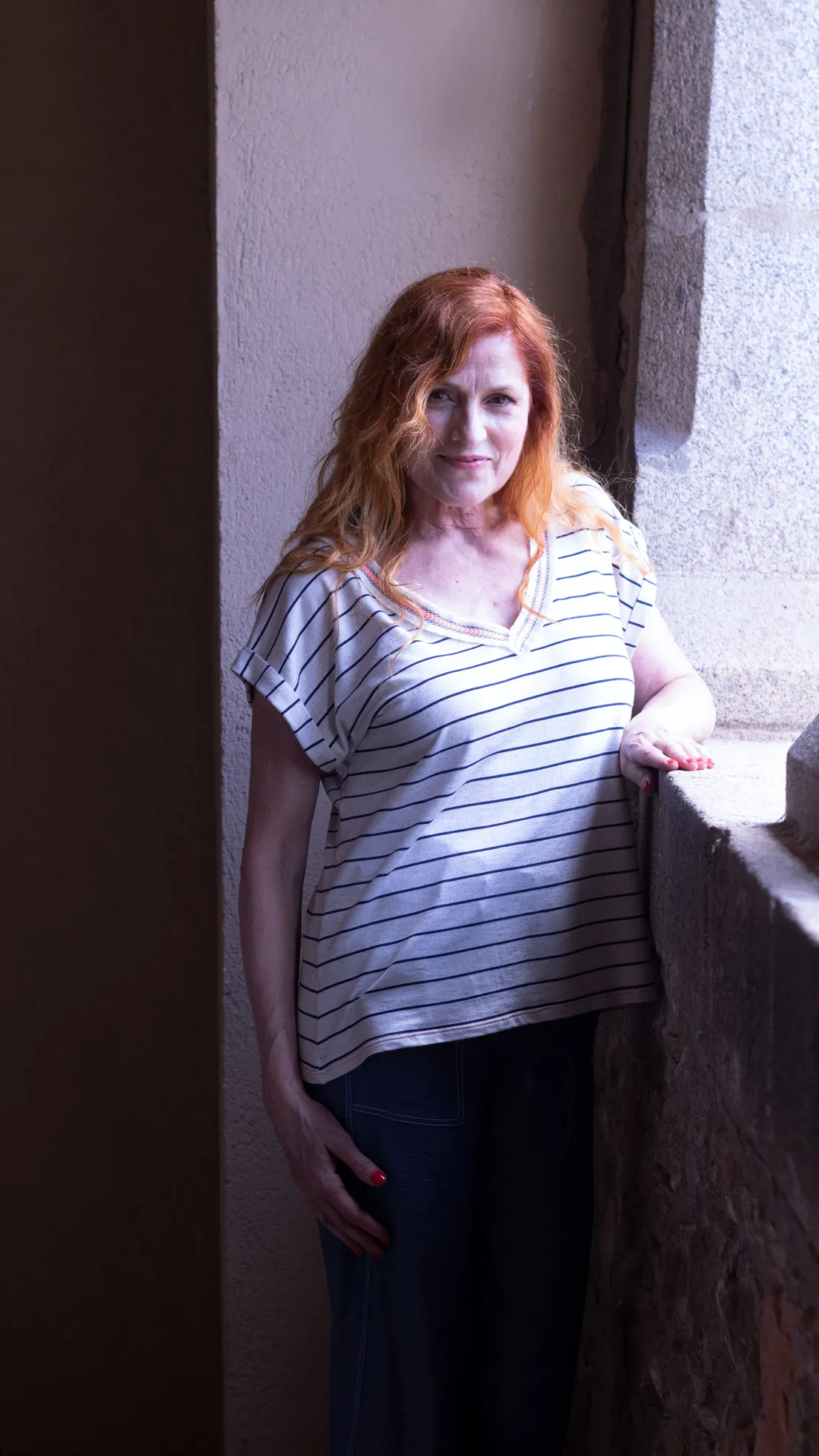 T- shirt que combina comodidad, frescura y diseño artesanal, ideal para un estilo relajado pero con identidad. Con un corte fluido y manga corta caída con vuelta, esta prenda se adapta suavemente a la silueta sin marcar, ofreciendo movimiento, ligereza y una sensación de frescura constante. Confeccionada en un tejido de rayas azul y ivory, mezcla viscosa, poliéster reciclado y elastano de origen natural, lo que aporta transpirabilidad, suavidad y elasticidad justa para un ajuste cómodo durante todo el día.