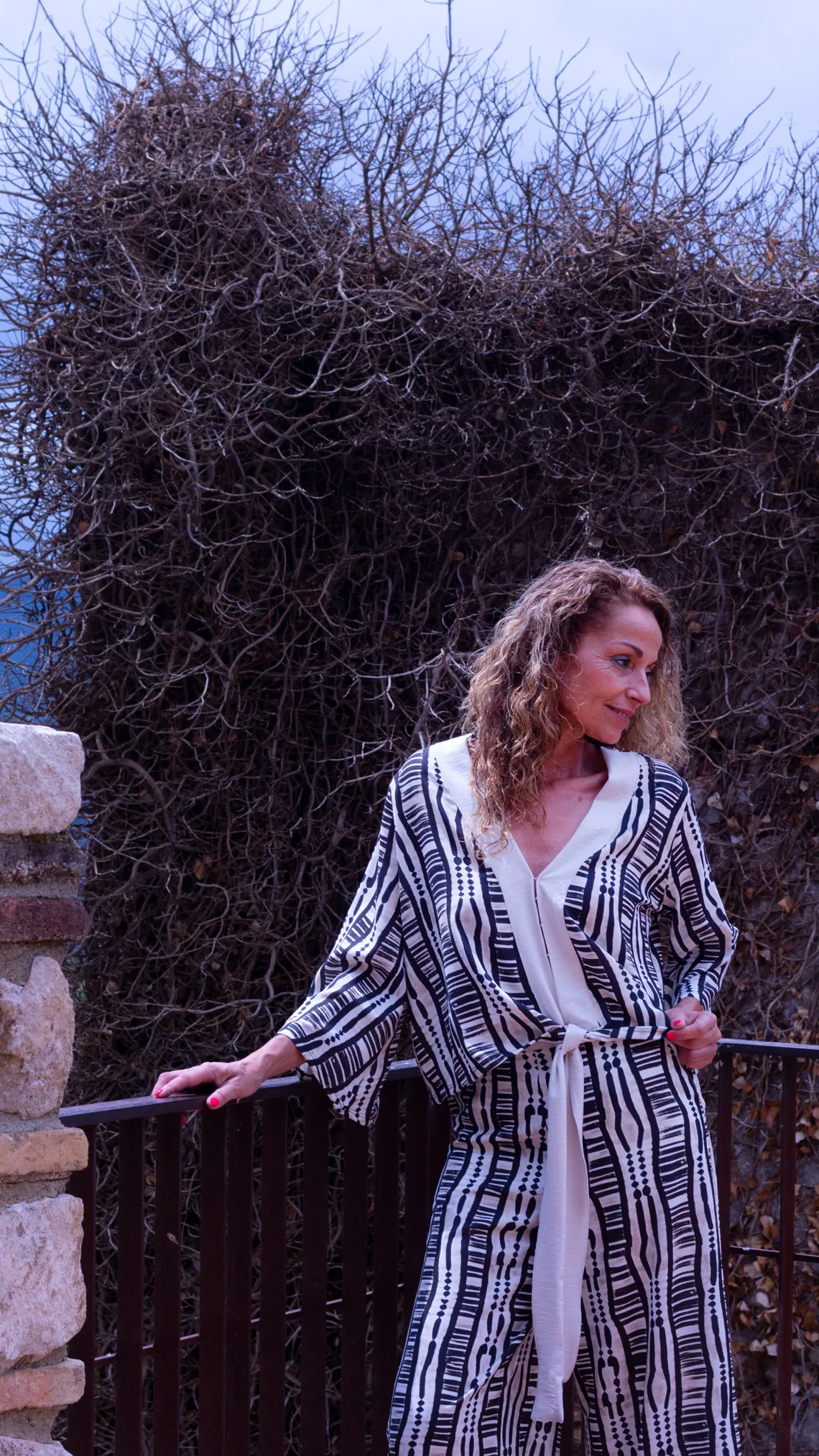 Colección inspirada en los ritmos, texturas y paisajes de la isla de Zanzíbar, esta colección fusiona la elegancia natural con una estética étnica contemporánea. Los tonos neutros:Nblanco, beige y negro, se combinan en un estampado étnico que evoca los tejidos tradicionales y la arquitectura suajili, creando un equilibrio armonioso entre lo artesanal y lo moderno.