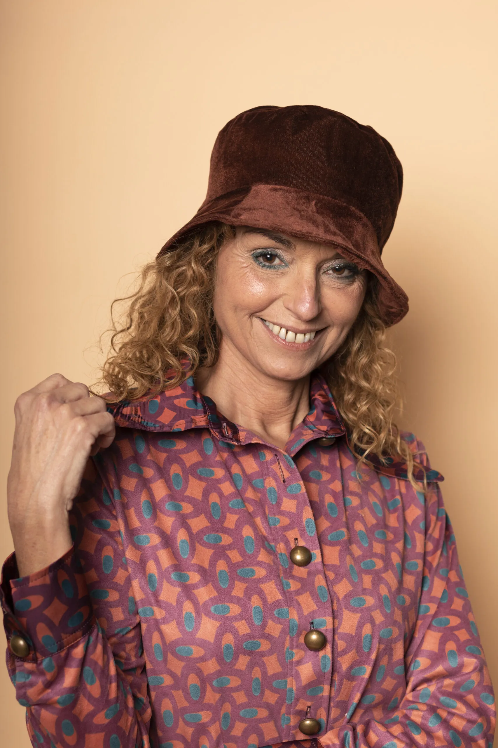 Vestido Camisero Corto en antelina elástica suave y confortable con un » Print » exclusivo de motivos geométricos en tonos terracotta actuales y favorecedores. Su diseño combina inspiración retro y contemporánea, Una prenda elegante, original y muy versátil, ideal para mujeres con gusto por el detalle y el diseño con carácter.