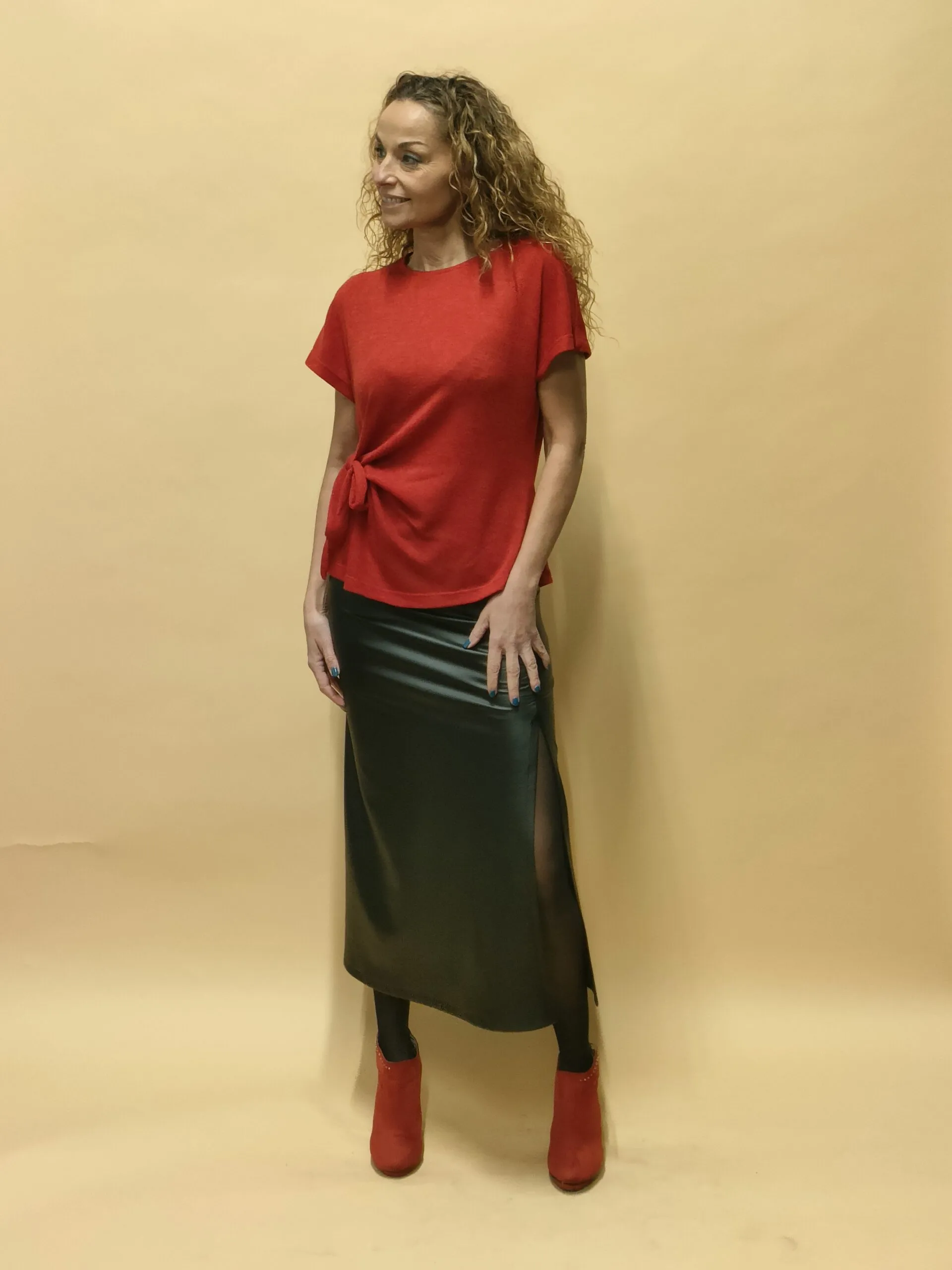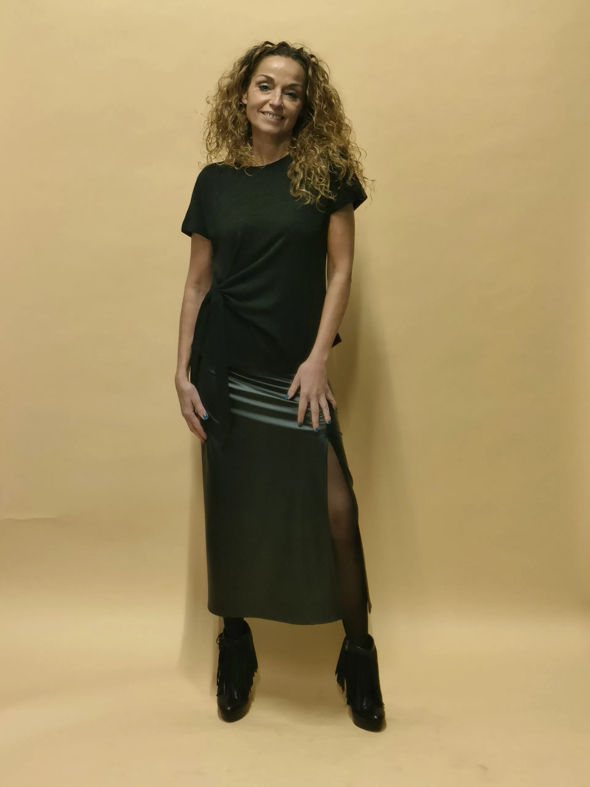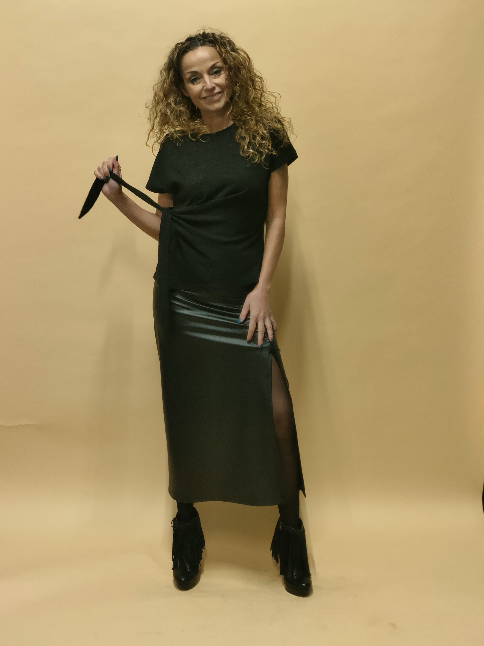 Jersey manga corta cuello redondo drapeado lateral, ligero, calentito , suave y lleno de estilo. Prenda perfecta para entretiempo o para llevar bajo tus chaquetas favoritas. Confeccionado en tejido de punto vigoré, ofrece una textura sedosa y cálida que acaricia la piel, con una elasticidad que se adapta al cuerpo sin ajustar. Un básico renovado que combina funcionalidad y estilo en una sola pieza.