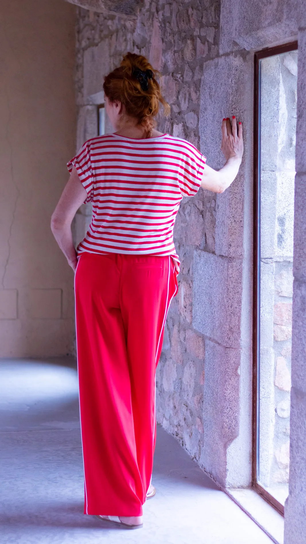 Este pantalón es una prenda de vestir que une elegancia, comodidad y modernidad en un diseño versátil y actual. Con un corte recto y limpio, este modelo estiliza la silueta mientras garantiza libertad de movimiento gracias a su tejido de poliéster de alta gama con elastano, de gran fluidez y caída excepcional. La goma en cintura  ofrece un ajuste cómodo y discreto, mientras que la cremallera invisible en la parte posterior mantiene una línea pulida y sofisticada. Los bolsillos laterales funcionales y las tapetas decorativas en la parte trasera aportan equilibrio entre lo clásico y lo contemporáneo. Como detalle distintivo, incorpora tiras laterales en contraste de color, que añaden un toque sutilmente actual, elevando el diseño con un aire fresco y urbano. Este pantalón es una pieza clave para quienes buscan comodidad sin renunciar al estilo.