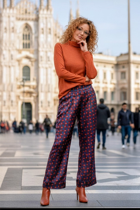 - estilo: pantalón versátil y elegante que eleva tus looks diarios con un toque sofisticado, o se convierte en la opción perfecta para ocasiones especiales. Ideal para combinar con camisas, del mismo estampado para un conjunto coordinado y actual o con jerséis lisos para un estilo más relajado.