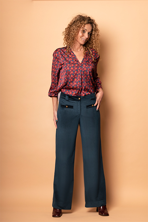 Pantalón Recto de Terciopelo elástico ultra suave y elegante, ofrece una silueta estilizada sin renunciar a la comodidad. Con Detalles de botones en color oro viejo que añaden un acabado sofisticado. Diseñado para unir elegancia y confort.